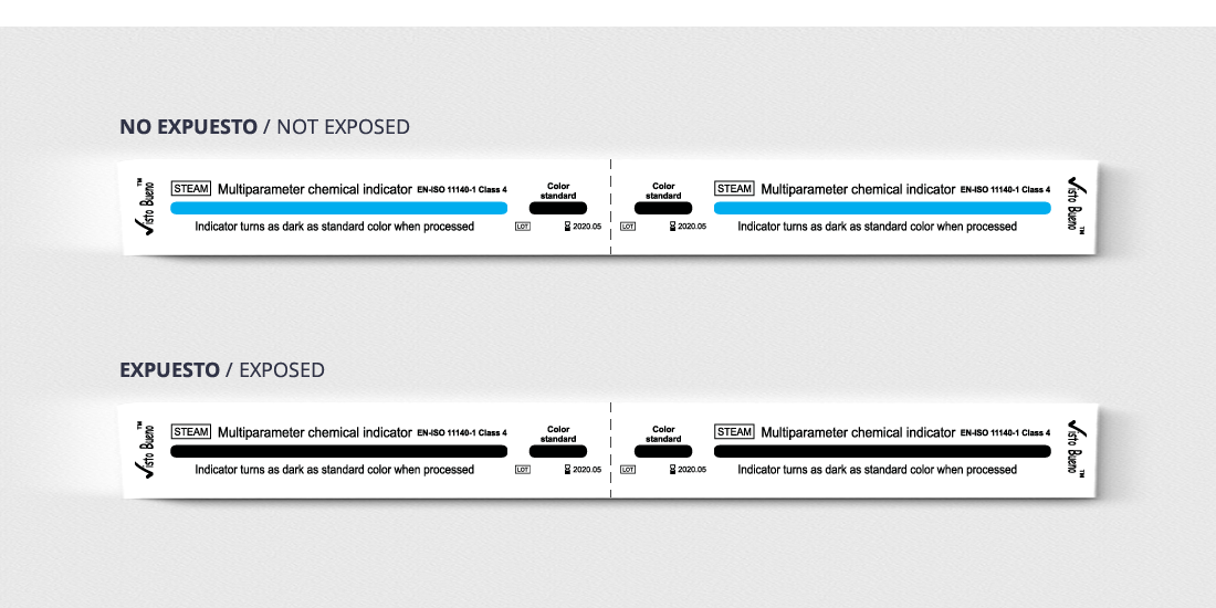 Multiparameter Indicators Type 4 (ISO 11140-1 / 2014, IRAM 37101-1 / 1999, clase D EN 867-1 / 1997).