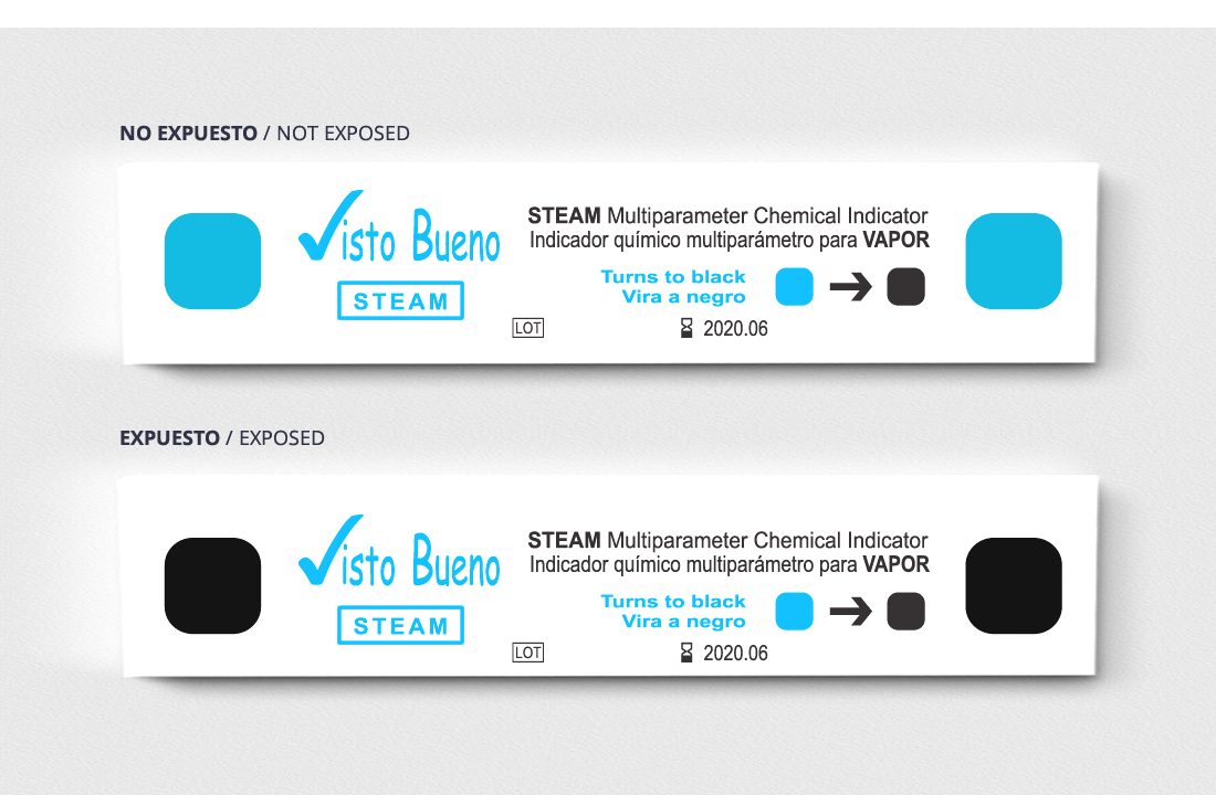 • It has been manufactured to be used inside and outside instrumental boxes, pouches, paper bags, cloth, etc..to check the sterilization process , showing with its final colour, that the process has complied with the requirements of sterilization ( temperature, time, dry steam).